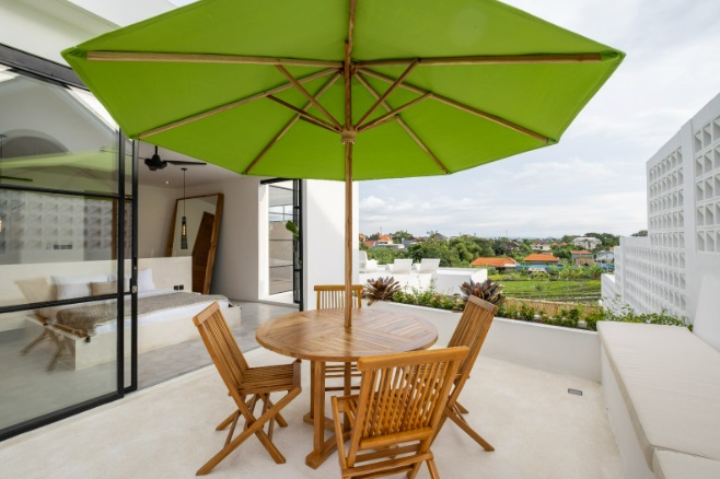 מתחם של 3 וילות בשכונת Umalas היוקרתית שנבנו למטרת מכירה, ונמכרו עוד על הנייר ובשלבי בנייה. כל וילה עם ארכיטקטורה וגימור מודרניים של 2 חדרי שינה וטרסת גג. הווילות כוללות בריכה פרטית, סלון שקוע ומטבח פתוח המוביל לאזור אוכל עם תקרות גבוהות. דלתות זכוכית מהרצפה עד התקרה מכניסות אור טבעי ושומרות על טמפרטורה קרירה בפנים. חדר שינה ראשי גדול ומרווח בקומה השנייה, עם חדרי שירותים נפרדים, ופותח למרפסת חיצונית המשקיפה על הבריכה ושדות האורז. העיצוב הפנימי תוכנן בקפידה.