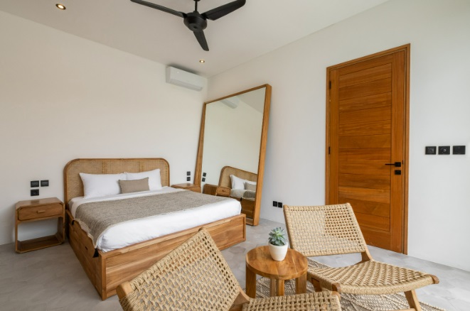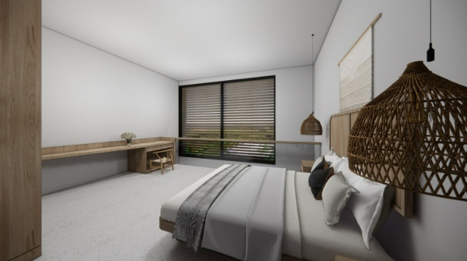 שתי וילות מודרניות בשלבי בנייה עם 2-3 חדרי שינה, ממוקמות בשכונת טומבטק השקטה מול שדות האורז המפורסמים של בבקאן. חיפשנו זמן רב אדמה עם נוף לשדות האורז המרהיבים. הווילות, נבנו על שתי קומות בשטח של 130 מ”ר. השקענו רבות בתכנון הבית עד שהגענו לניצול מקסימלי של השטח, כולל הוספת כמות משמעותית של ברזל למבנה, כך שביטלנו צורך בעמוד תמיכה במרכז הסלון, מה שיוצר תחושה של חלל גדול ומרשים. כל חדר שינה כולל מרפסת פרטית עם נוף לשדות האורז (לא מעודכן בהדמיות), והסלון הסגור צופה על הבריכה וטרסות האורז. מושלם לרגיעה ולהנאה מהאקלים הטרופי. את הוילות אנחנו מייעדים למכירה.